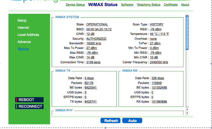 Finally, I did speak with a very nice lady in customer service last night, went through all the required scripts and troubleshooting, but to no avail. The WiMAX signal levels I was getting were fine and I was not in one of the identified “network capacity” areas in South Bend. Due to their fast growth it sounds like certain areas have backhaul oversubscription issues.