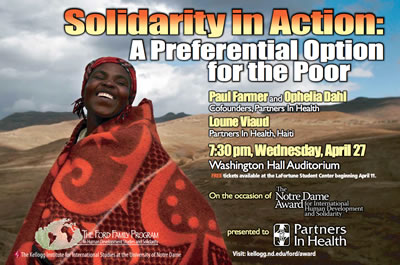 This week I was invited to an event honoring Partners in Health with the Notre Dame Award for International Human Development and Solidarity. Paul Farmer and Ophelia Dahl founded Partners In Health more than 25 years ago in Haiti to provide excellent health care for the poor through advocacy, service and training. Partners In Health has since grown to provide critical services in more than a dozen countries.